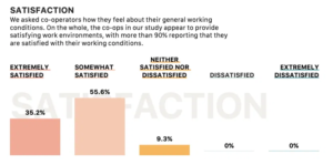 The survey results confirm that the co-operative model is a promising strategy for mitigating individualized patterns of work, democratizing work relationships, and providing satisfying work in creative industries contexts. Co-ops are not a magic solution to systemic work problems. But the co-op model – in conjunction with other pro-worker policies and organizations – holds potential to democratically remake work in ways that have yet to be fully realized, or widely tested, in creative industries.